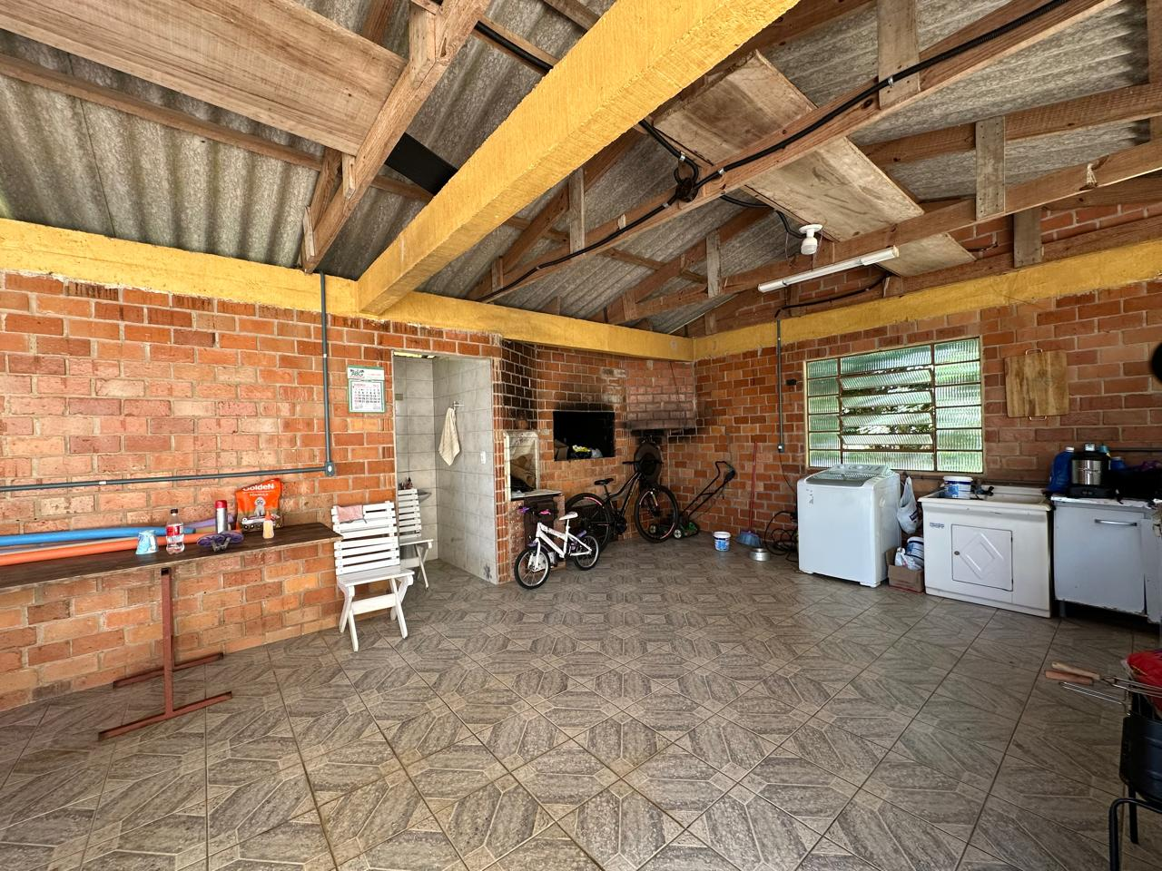 Totalmente cercada, a casa oferece uma área externa que convida ao lazer. A piscina e o amplo espaço ao redor criam o cenário perfeito para momentos de descanso, convivência e diversão ao ar livre. A garagem de 12 por 5 metros e a construção principal de 12 por 12 metros reforçam a excelente distribuição dos espaços.