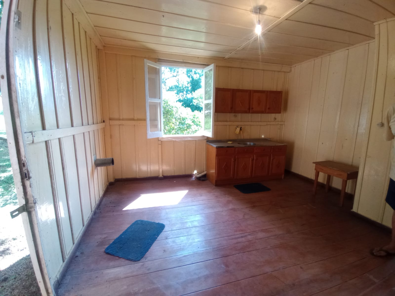 A propriedade conta com uma casa composta por dois dormitórios, sala integrada à cozinha e banheiro, proporcionando um ambiente funcional e acolhedor para o dia a dia.